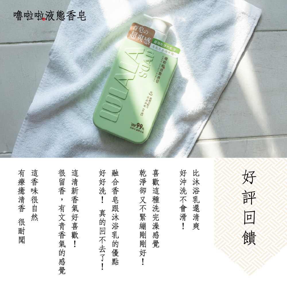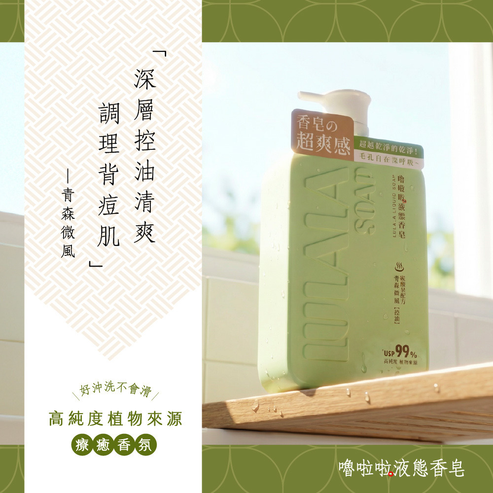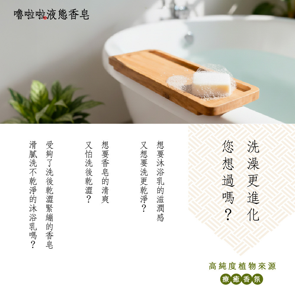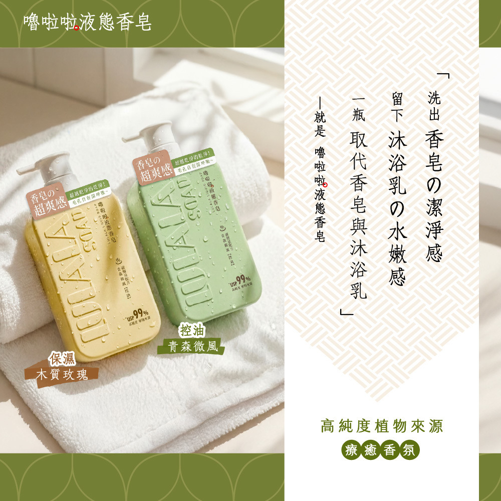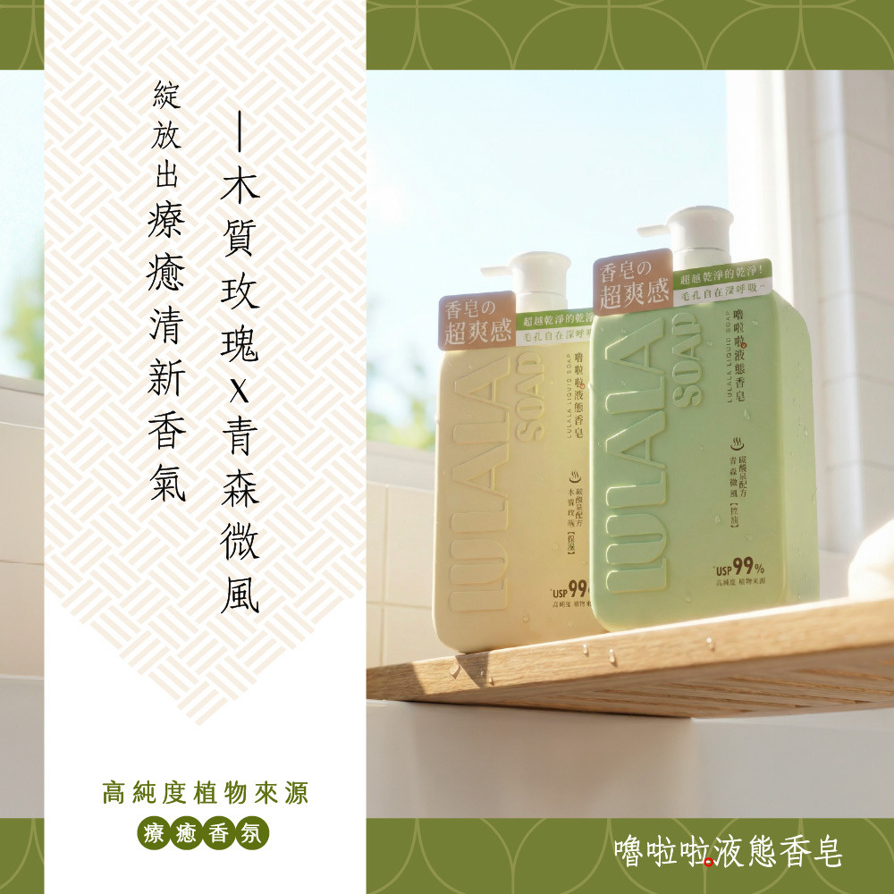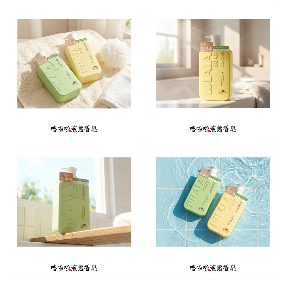 洗出香皂的潔淨感,留下沐浴乳的水嫩感。完美取代你的沐浴乳與香皂!就選嚕啦啦液態香皂