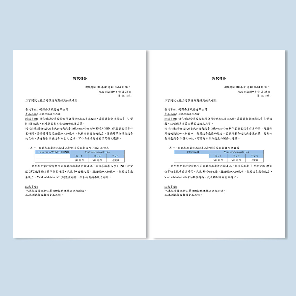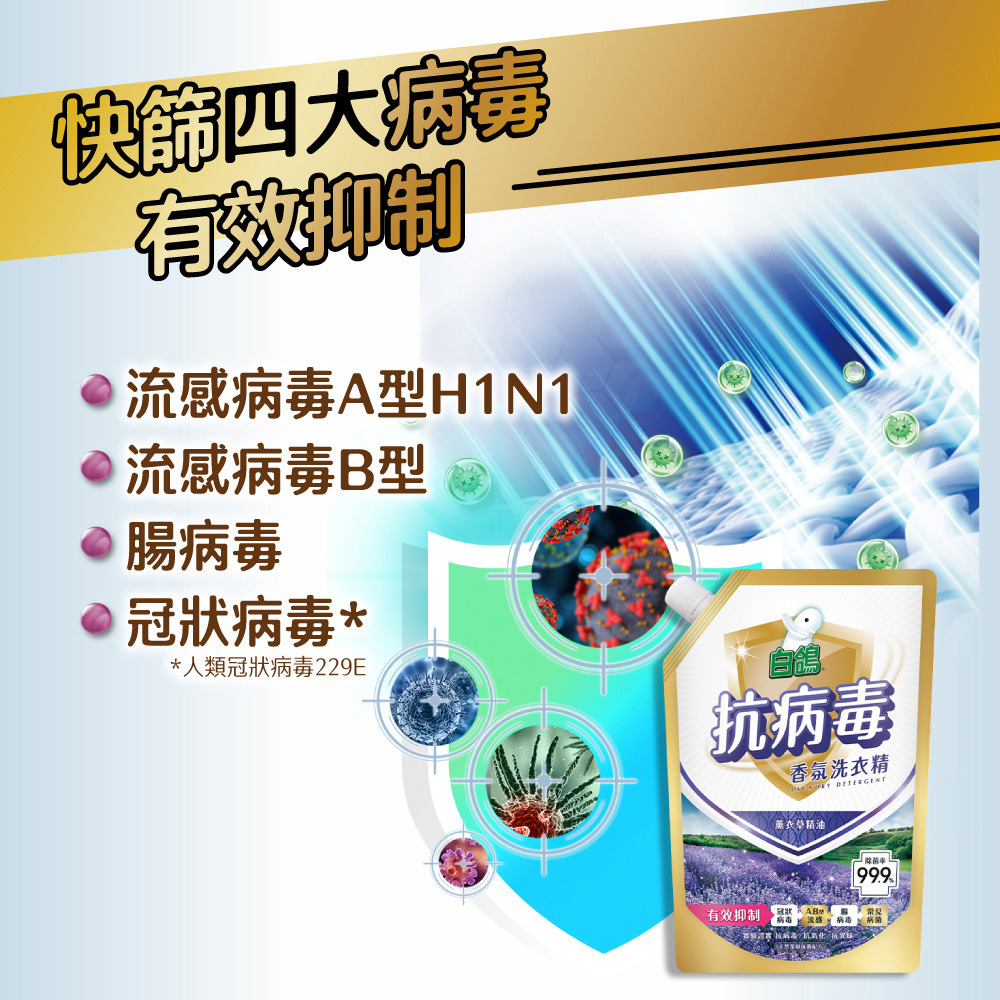 ★抗病毒:茶樹抗菌配方,經國內知名大學病毒實驗室測試,可有效對抗病毒(AB流感、腸病毒、冠狀病毒) (※冠狀病毒是指人類冠狀病毒229E) 經SGS驗證,有效洗淨衣物上常見之多種病菌(金黃色葡萄球菌、大腸桿菌、綠膿桿菌、白色念珠菌)